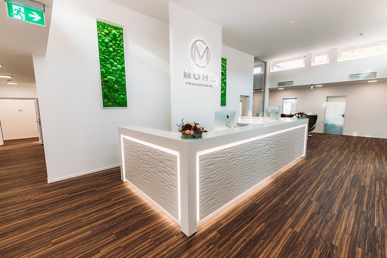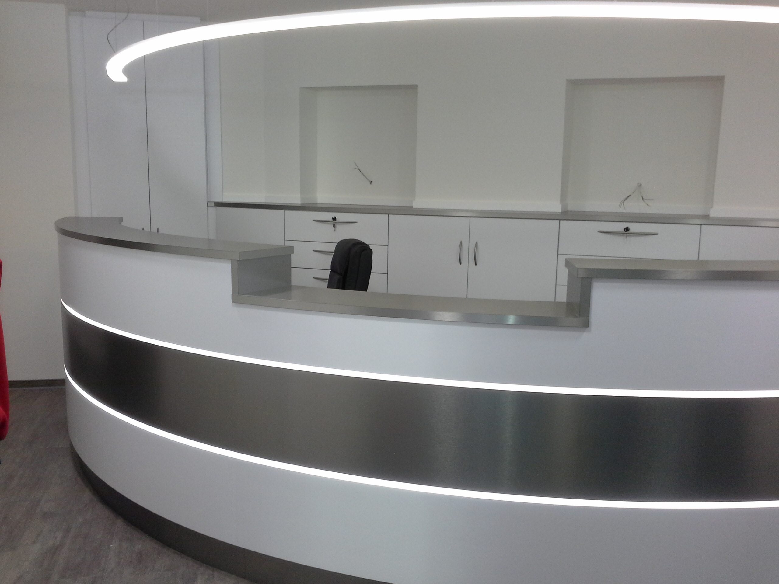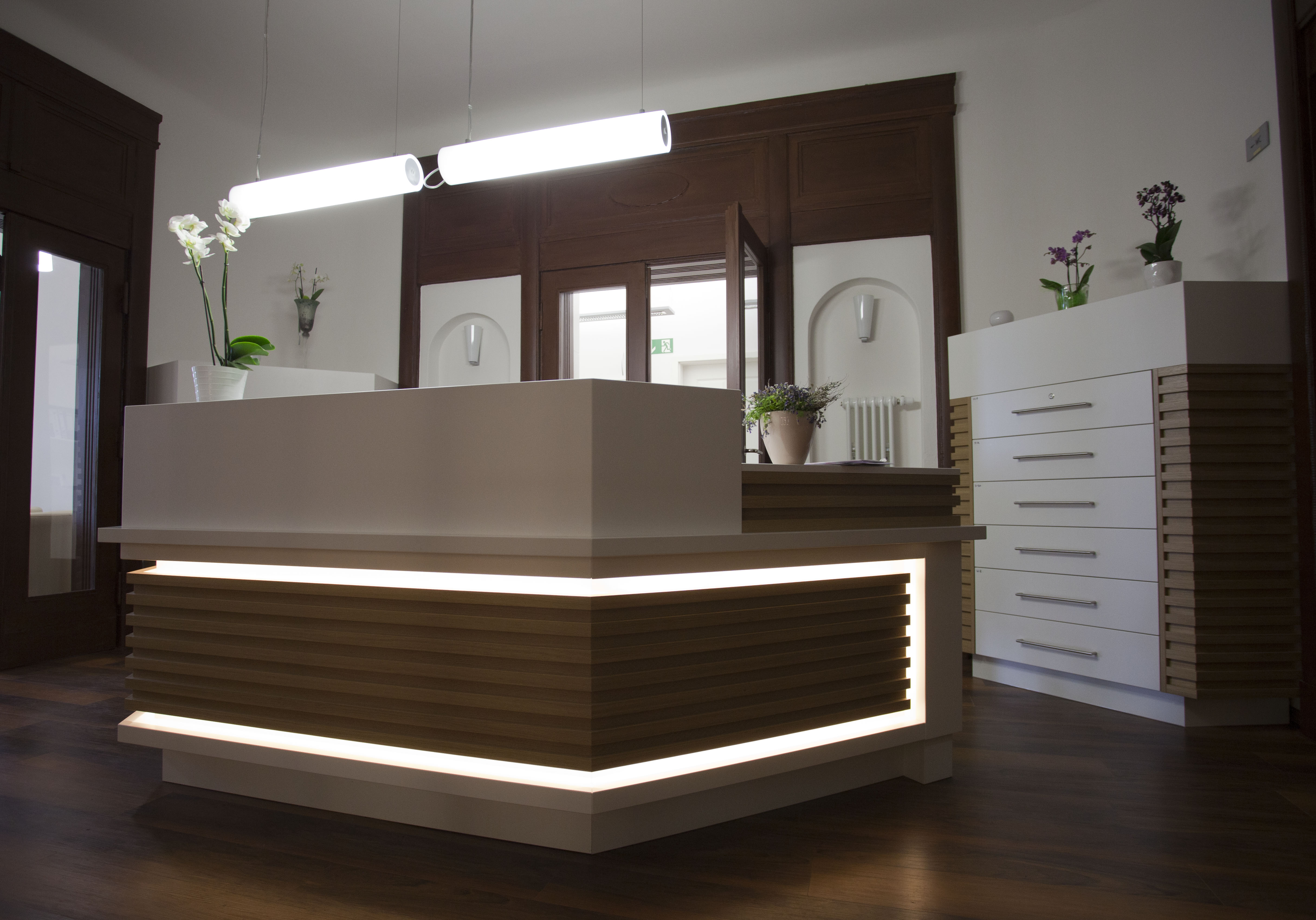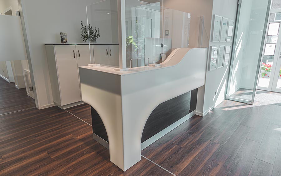 Ihre Raumsituation in den Empfangstresen. Natürlich vergessen wir die Funktion als